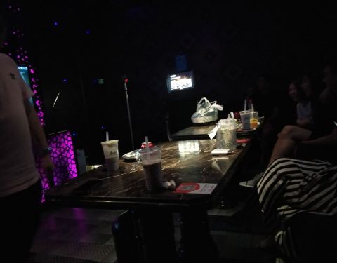 这是一家ktv,也有菜单什么的,可以点菜点小吃也可以外卖饮料。 就是去看看兄弟的新女友,跑过去好家伙,一排哈哈哈,开开玩笑,有的是他同事而已,他们唱的都挺不错挺嗨的,音效挺好的。