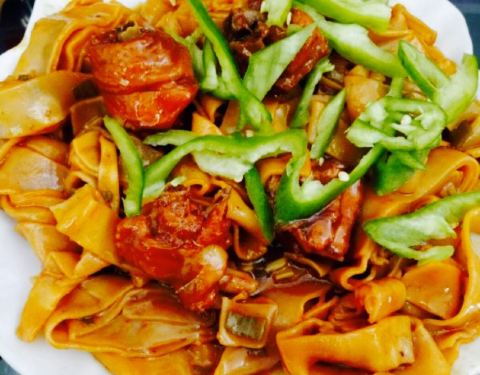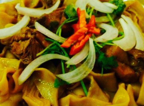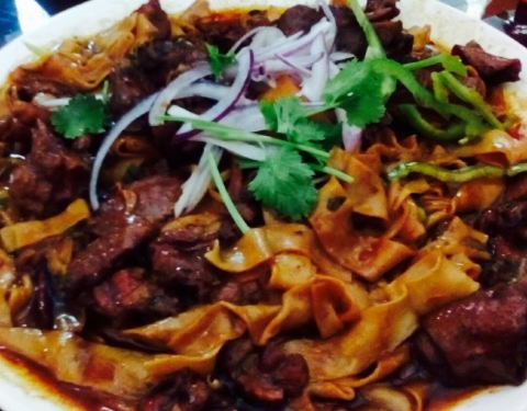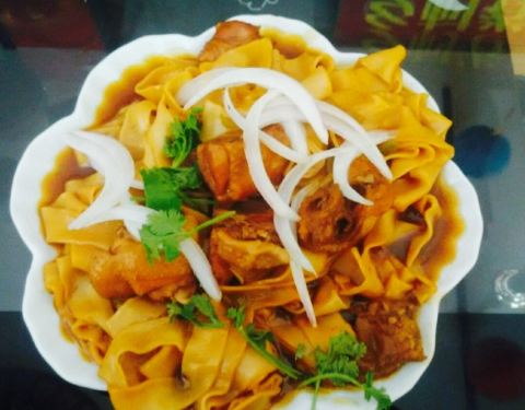张掖的特色美食卷子鸡。跟大盘鸡很像。除了里面的卷子,这个卷子指的是卷起来的面皮。很有味儿,份量也是够够的。两个人吃小份的连一半都没吃掉。但老板说当地人一个人就可以吃掉一份小份,还要加,食量惊人啊。鸡肉除了个别几块有点柴,别的都还不错。还有洋芋,洋葱这些。卷子比较好吃,就是太多了。整体还是不错的。