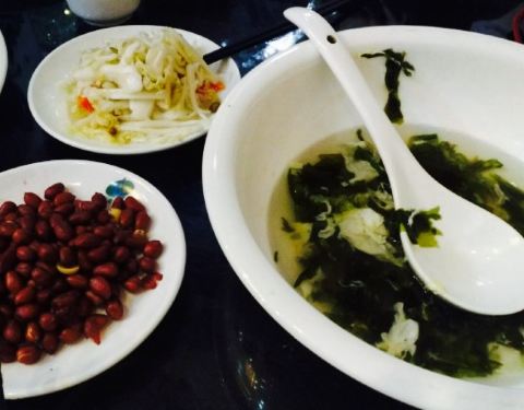 到张掖第一天晚上吃的。这家不错,老板娘都很实在,点了卷子鸡的套餐,里头有一份紫菜蛋花汤,还有些许小菜,都十分的可口。汤几乎全喝了。卷子鸡十分鲜美,面皮入味,鸡肉也多。老板娘还说我们两个人点这些够了,没有强制推荐,特别好。