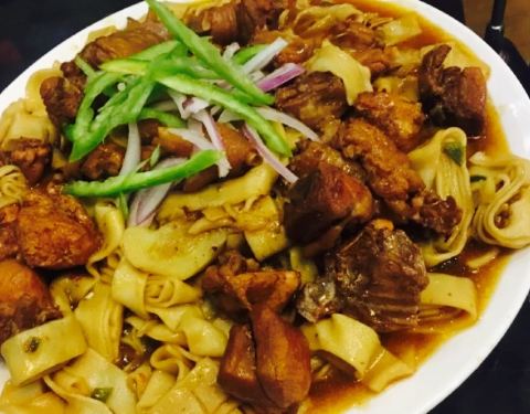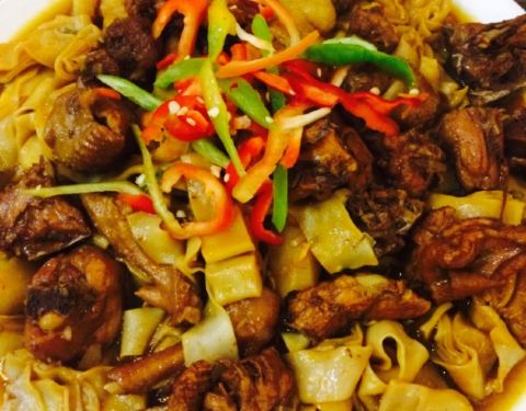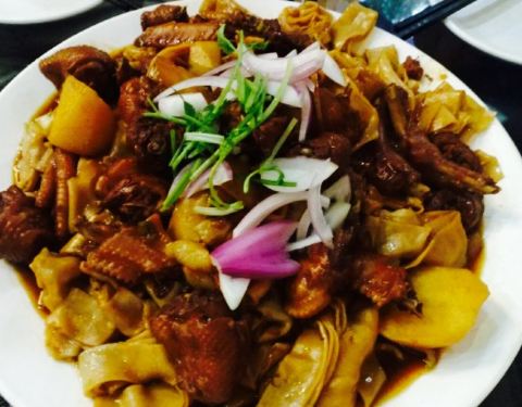 卷子鸡是张掖的特色菜,一开始看图片有点像大盘鸡,还是过来尝试。验证很快,可是上菜非常特别慢,不明白为什么煮个面条要这么久,面是卷起来的,跟大盘鸡面片还是有差距的,单人餐的鸡肉才给四块,而且皮好厚,骨头好多,就是试个味道而已,说真的很一般,而且太油了,送的菜肴是泡椒白菜,有点小辣,比较鲜美,服务一般般吧。