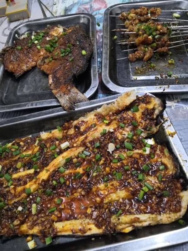 友人说这家的烧烤特别鲜美,为了来这家吃烧烤,开车跑了12公里,我想我们也是醉了。烧烤店在一个胡同里,里面有几家烧烤店铺,只有这家的生意非常好,虽然餐桌简陋,不过都坐满了。我们点了鱼,韭菜加烧烤串串,...