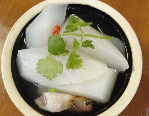 - 炖萝卜,有汤有猪骨有大块萝卜,非常好吃,还有老汤猪蹄:铁锅炖鱼,都很好,物美价廉