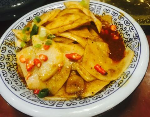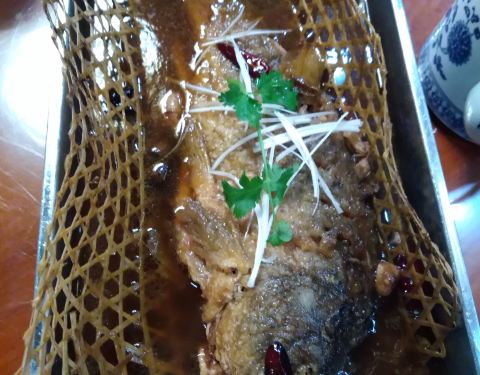 在甘肃天水游玩时,离住的大酒店很近就去尝尝了一下。①自制凉皮,北方人以面食为主,自己做的,嚼起来很劲道,拌酱入味,老爸对它赞不绝口。②烩拌山野菜,野菜很鲜美,对于我们来说,第一次吃到这样的野菜。③炖萝卜汤,萝卜入味,汤也爽口,小妞汤泡饭连吃了两碗。??。④铁锅烧鱼,鱼没有腥味,烤得很嫩。⑤蒜泥油麦菜,清淡。四大一小,再加一大碗白饭,花了127元,经济又实惠。??。