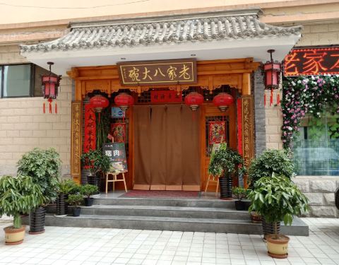 位置挺好找的,离步行街很近,过了桥走两分钟就到,两个人吃了89,点的一个铁锅烧鱼,一个红烧肉,两碗豆腐,一个打卤面,吃的很撑,红烧肉分量绝对足,铁锅鱼超级实惠,我自己吃到吃不动,哈哈,吃不完最后打包...位置挺好找的,离步行街很近,过了桥走两分钟就到,两个人吃了89,点的一个铁锅烧鱼,一个红烧肉,两碗豆腐,一个打卤面,吃的很撑,红烧肉分量绝对足,铁锅鱼超级实惠,我自己吃到吃不动,哈哈,吃不完最后打包了,里面人很多,我们六点半左右到的,已经满座,期间很多人排队,听口音也有像我们这样的游客慕名而来。这个八大碗说实话真的分量足,适合几个好哥们一起来,要不然根本吃不完,情侣来就荤素搭配好,别点太多肉类,他们的八大碗有按照每人份的小碗,尝个鲜挺好的,总之很不错。