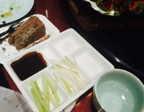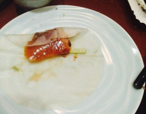 对于一个长期生活在帝都的人来说,这家店就算比较中规中矩了,没有惊喜亦没有太多失望。装潢风格略复古,包间都以北京的地名命名。服务也比较及时友善。烤鸭的味道一般般,尤其酱的味道不出挑,带不起烤鸭整体的味道。荷叶饼超级薄,是我吃过的最薄的荷叶饼。爆肚特别嫩,但总感觉哪里缺点什么。有一道豆芽,肉丝木耳炒在一起的菜,应该叫炒合菜吧,很有味儿。去之前团了一个双人烤鸭套餐 。很合算,但是套餐里有一道干锅土豆片,一直都没上,我们都忘记了,基本快吃完准备结账了,服务员过来告诉我们还有一道菜没上 。我们说都吃完了,你们也不早点提醒一下,服务员说,之所以也没什么解决办法,是因为是团购的,这点非常不满意,不能因为团购就降低标准吧,希望商家就这个问题有所改进。