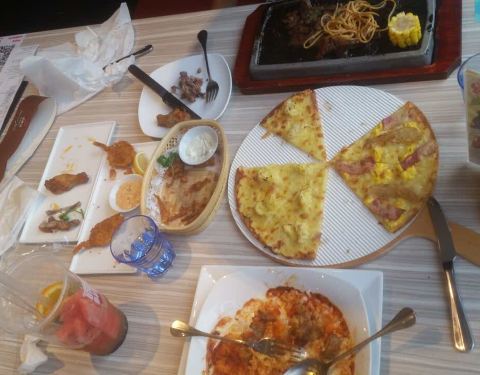 服务态度很好。。。东西也不错哦。。。披萨很好吃,虾很新鲜哦。。。甜品还好,有点偏甜,个人感觉。。。