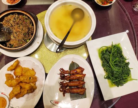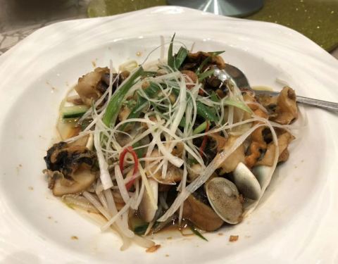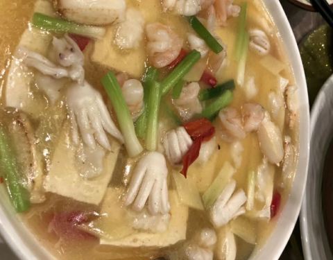 华福酒店海鲜餐厅 位于:码头街1号,华福酒店三 团购还可以使用宽敞舒适的包厢,这简直爽爆。除了静雅的环境,还可以享受优质的服务,当然少不了好吃的食物。 脆皮丝丁鱼:酥脆的外皮包裹着柔软的丝丁鱼,两种不一样的feel搭配在一起,超赞。 紫菜饭料足,鲜香,再搭配鲜甜的竹笙干贝汤,美美的一餐。 整体比大排档性价比高很多,适合约会、宴请、聚餐等。