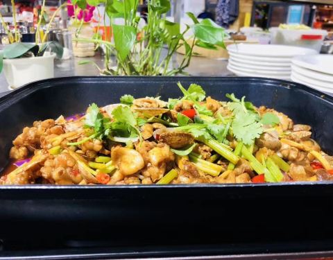 高铁附近的中餐厅,正宗湘菜。老板很热情,口感比较好,很合我的口味。环境就是一般的排档了。菜品齐全,价格不贵。距离高铁站大概五百米的样子。