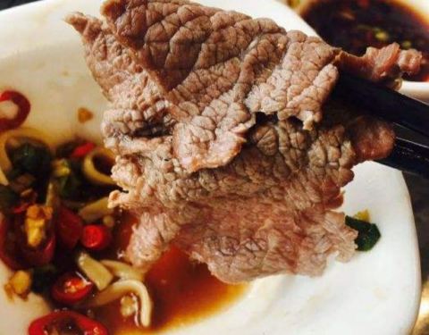 哈,应该可以算的上是一个新鲜的牛肉铺吧,你点的肉,正在里面处理着,肥美的牛肉分成各种不相同的部位高高挂起,切片、摆盘都明明白白的展现在面前,新鲜看的到也吃的到,服务员介绍说,他们家的牛肉,是选用来...
