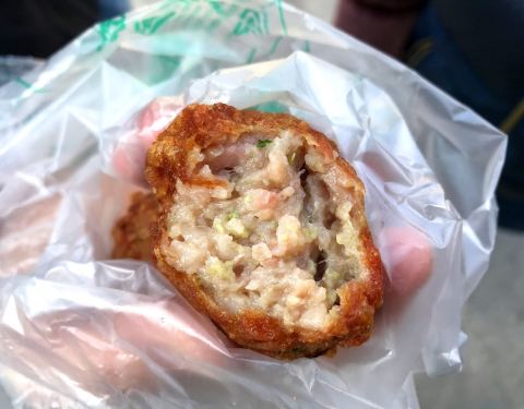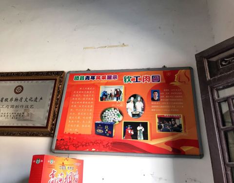在河下古镇里逛逛,看到这家店,上网一查,这里的钦工肉圆还是很有名的,我不爱吃猪肉,小朋友是很喜欢,所以买2个尝个新鲜。 这个肉圆从外表上看真是没有什么特别之处,和家里的肉圆子差不多,个头也不算大,就比乒乓球大一点,看着柜台里满满的肉圆,和墙上好多徵章,感觉应该来买的人不少,轻轻咬上一口,外面皮酥酥的,里面的竟然非常的鲜嫩,是很鲜嫩、不是没有熟的那种,而且口感真的很弹牙,一股子清香,实在是比我想像中好吃太多,小朋友吃的津津有味,还没有几分钟,2个肉圆基本进小肚子了,我只尝了一小口,确实美味。呵呵。可以尝尝。肉圆大概5元一个,因为个头都不大的,所以感觉有点小贵。
