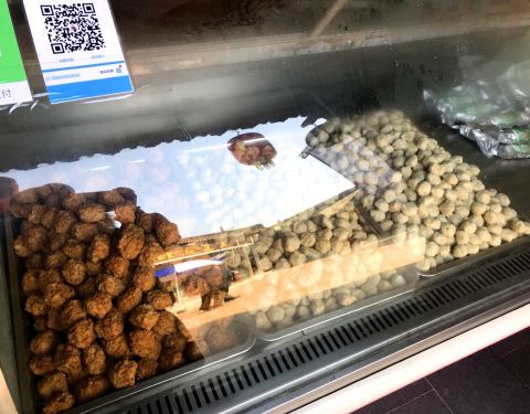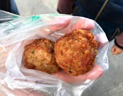 这个肉圆从外表上看真是没有什么特别之处,和家里的肉圆子差不多,个头也不算大,就比乒乓球大一点...