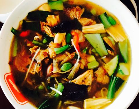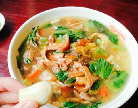 这家奇贤面馆也是一家老店了,他家的都是手擀面,早晨8点多到店里楼下位置基本都满的,店里的生意不错,点了淮安特色的长鱼面,儿子喜欢吃长鱼,味道很好,面条劲道,有嚼劲,时间长了也不会烂糟糟的,平常我都不怎么吃这样的面的,都只吃银丝面的人只是这次吃下去感觉这次的试试还是不错的。