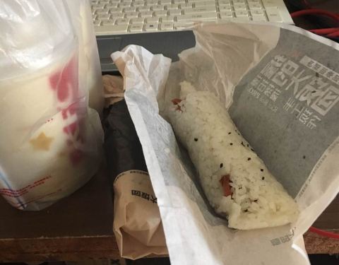 饭团加油条好香,配个冰豆浆,完美!个人很喜欢的搭配