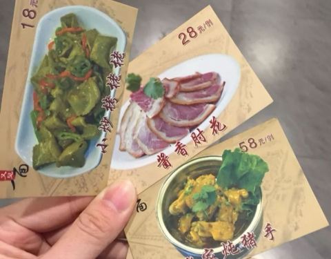 又见一面老菜馆,就在我们住的又见文华大酒店门口,点菜就是去备菜台拿小名片,然后给服务员