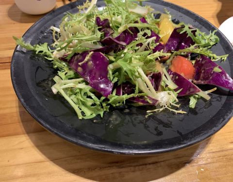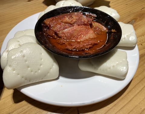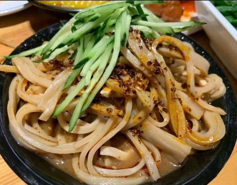 又见一面老菜馆,就在我们住的又见文华大酒店门口,点菜就是去备菜台拿小名片,然后给服务员。上菜还是很快的,点了小酥肉、酱肉馒头、水果蔬菜沙拉和刀削面。沙拉最好吃,里面有芥末。其他的都一般般。