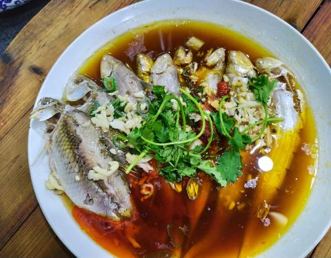 鱼在中间,饼在锅边上,就着小鱼来吃饼,还是比较惬意的。这里主要是吃大锅的