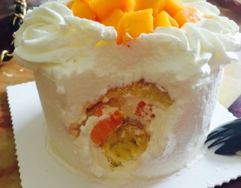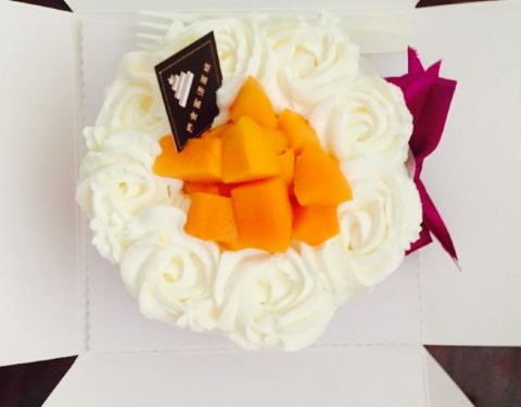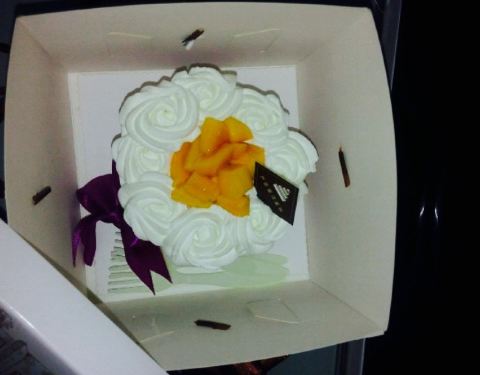 蛋糕是4寸大小的芒果奶油蛋糕,里面还有芒果奶油夹心层,据说用的是动物奶油,难怪好吃还不腻