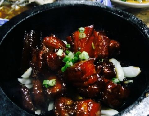 跟同事聚会来这里,人超级多,还是提早预定的桌子。上菜还是挺快的,分量也很足。红烧肉颜色鲜亮,味道也好,下边是洋葱。大烩菜里面菜品品种多,肉也不少。推荐那个炊饼,外壳酥脆,很鲜美。整体店内环境很有特...