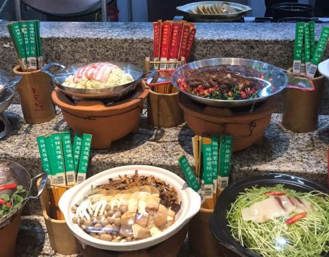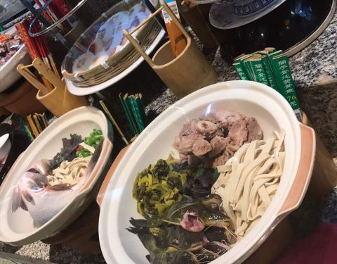 一个很大的风味馆子。1,点菜,好玩。我只见过把菜成品做成样子,供点餐的,没见过把食材花了大片地方来展示的。2,食材看上去健康,清新,情不自禁的点了好多绿色菜,比如青豆烧排骨,没想到是一锅汤,但味道的...
