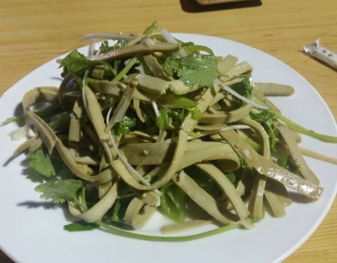 洋芋擦擦就是土豆丝蒸熟了再炒一下(好像是这样),口感不错。甘泉豆腐干是当地名小吃,口感有点硬