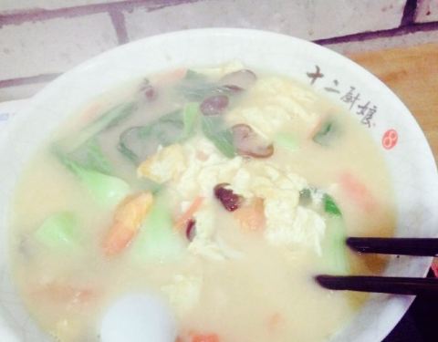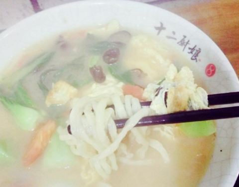 学院西城2楼,十二厨娘里面的。我很喜欢吃他家的麻糍,没有啥原因就是开心哈哈哈。这次点了炒粉干,唔,色泽看上去不错哦,一份12,刚拿到手觉得这么点,不值吧,结果越吃越多。这量满分,根本吃不完。里面有肉丝豆腐干。(是这么叫吧)绿豆芽还有我不高兴的胡萝卜,还好胡萝卜很少,嘻嘻,整体口味很好,粉干没有很软也没有很硬,味道还不错。然后前天点了份番茄鸡蛋面,拿到手也是惊呆了,这蛋放了几个呀,许多的样子,还有木耳青菜番茄,味道带点酸,面条很入味,有嚼劲,面条里放点汤更鲜美,嘿嘿。今天本来还想点个藕饼的,好可惜啊,店里并没有,失落,然后发现旁边还有小火锅,跟同学一起吃应该会很不错噢,大冬天很暖胃的咯。