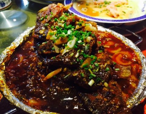 看菜点菜,分量很足,性价比比较高的一家店。一楼一个包厢,大厅十几个桌子,一楼和二楼间还有一些桌子,二楼是包厢,清净多了,一楼好热好吵,建议去之前最好订个包厢。羊蝎子味道很好,肉很嫩,建议提供一次性手套。炒三丁里面有河虾,臭干子和辣子,虾炸过的特别入味,脆脆的。安积鱼很好吃,特别嫩,分量蛮多的。三鲜仔糕,味道很不错。周一到周四晚上是8,8折或者满100送50。下次请客吃饭会作为一个选择。
