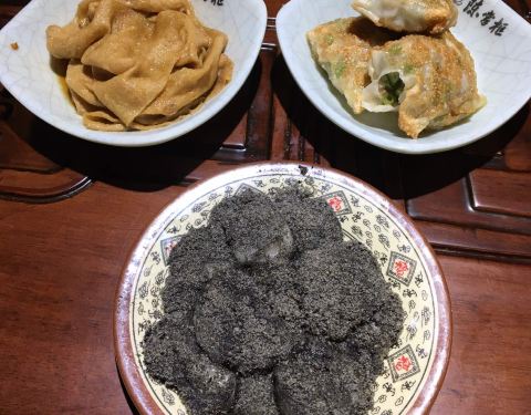 - 掌柜家提供小吃也有面食,价位适中,选择比较多,图下是大份麻糍,煎豆角包和豆腐皮,味道都非常好