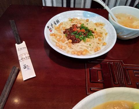 第一次吃是在飞达国际酒店附近,点了一个山粉蛋面,一个拌面,一份小吃,忘了叫什么了。汤的味道很美,并且很烫,吃到完都是热乎的,我就喜欢这样,粉很嫩滑,拌面的味道不错。 第二次吃在丽水站旁边,姥姥炒饭味...