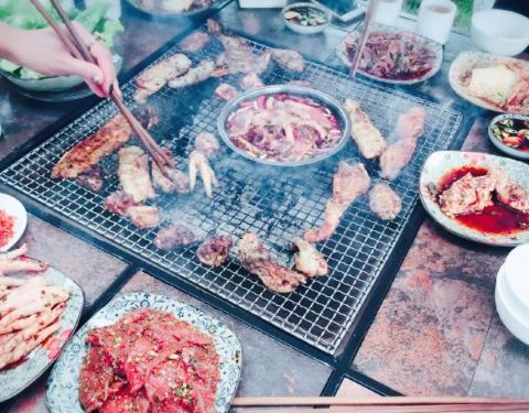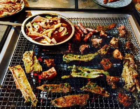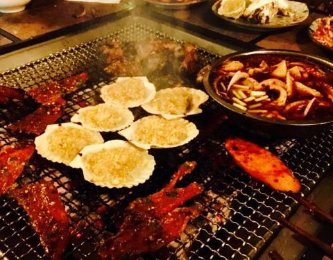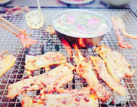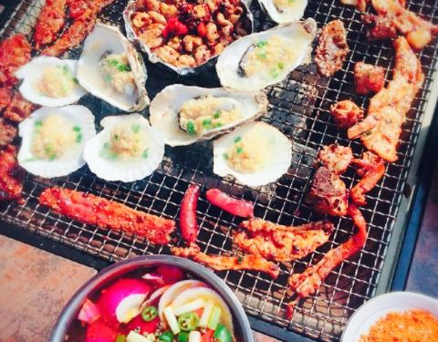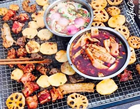 还蛮可口的,晚上去的,看不到环境,但白天应该很漂亮。觉得是一个室外花园类的烧烤,貌似还可以吃大菜,喝下午茶。喜欢五花肉,牛肉和火腿肠。五花肉码了料,牛肉有些辣。鱿鱼,扇贝,生蚝就不好了,不太新鲜,味道也不如其他的入味。