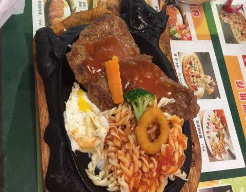 - 位置非常好找,黑胡椒牛排刚刚好遇上活动优惠10块钱,非常实惠,黑胡椒有点辣,番茄的好吃,西瓜也...