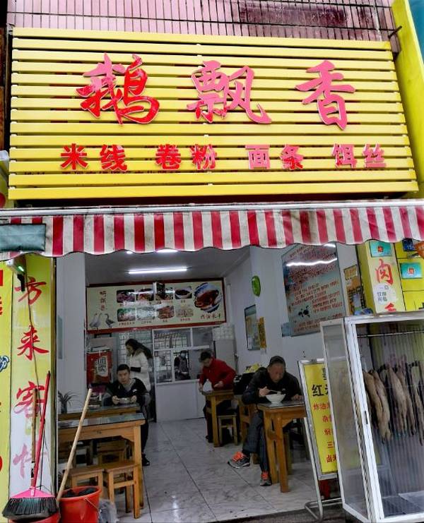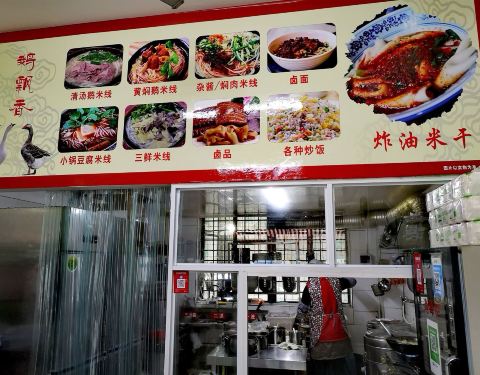 点评上搜的店,看到鹅肉米线,很新奇,跟着导航就过去拔草。位置很准,不一会儿就找到了。很小的一个门面,也就7张桌子的样子。简餐店,主要卖米线、面条、饵丝、炒饭、盖饭等。点了黄焖鹅米线,大碗,10块钱,味道很好,如店名一样鹅飘香。觉得味不够,自助调料台有多种佐料可选放,香菜和油辣椒特别香。划着米线,再加点鹅肉,满足啦!