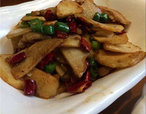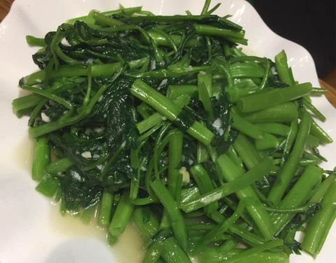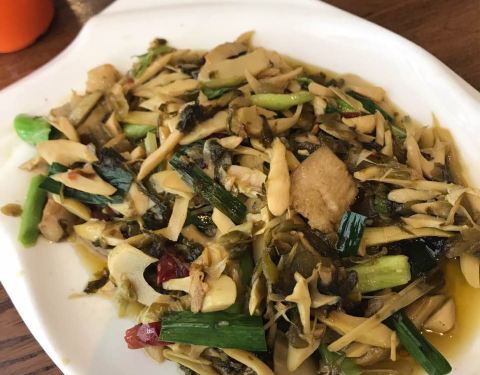 鱼看着不错,但是很腥。绿色的笋,炒成黄色也是绝了,真难吃。