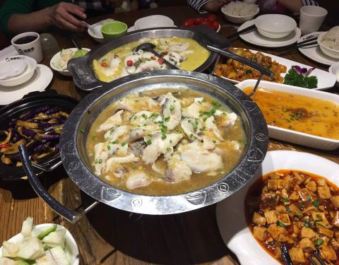 酸菜鱼还不错,还有烤鸭。干贝苦瓜汤有些淡了。整体还行