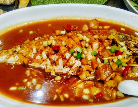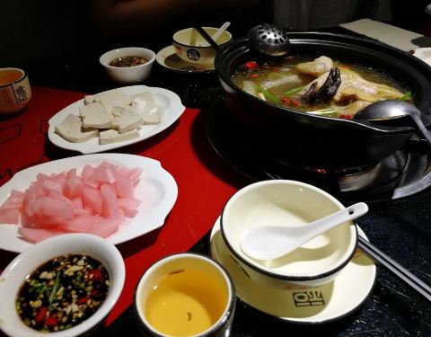 游玩过万峰湖后,不是特别饿,又觉得最近一路晚来吃的过于油腻,选择了这家两人套餐。总体环境不是很卫生,只是服务员小男孩还挺热心,半只鸡一锅汤,鸡汤鲜美略咸,鸡肉绵软,直接吃或者沾着有点酸辣的汁子都很可口。吃完鸡肉喝完鸡汤会加入清汤,烫点青菜,煮点豆腐浓浓的豆香,吃完挺舒服。