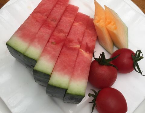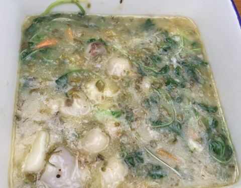 这家“滕头生态酒店”,热带雨林里吃饭,除了环境好,味道也好! 一进门就看见一座弥勒佛,笑吟吟的迎送四方宾客。还每张桌子送一盆水果。