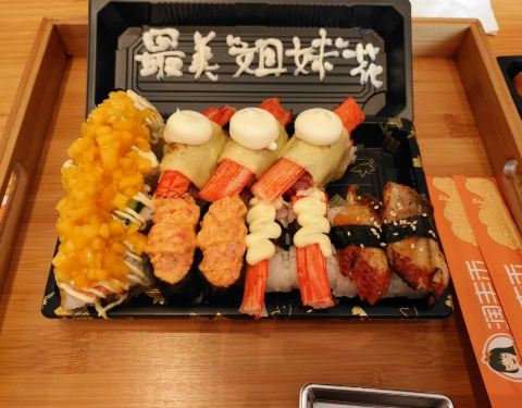 吃到网红寿司赞!店里的字都是手写的,很有诚意服务很亲切,有点海底捞模式当然最棒的还是食物的味道啦敲美味[耶]