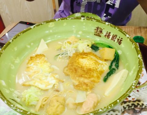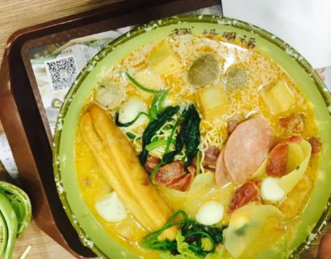杨国福麻辣烫位于腊梅路16号,就是从客运中心旅客出口处对面这条路进来,靠右边走。很容易就找到了。杨国福麻辣烫的隔壁也是一家麻辣烫--是旋转麻辣烫。每次去发现这两家店的生意都特别好,虽两家都是麻辣烫但两家风格大不同,旋转麻辣烫是自助式的,一人一锅,菜品在流水线上不断旋转,自己选菜自己煮,边煮边吃,她们的菜是事先串好,按串串算钱的。还有他们所有的调味品都由自己添加。杨国福麻辣烫,类似于传统麻辣烫,顾客选菜,店家煮好再送到顾客桌上。但杨国福麻辣汤与其他麻辣烫不同的是,他们几乎全部的制品都是选用思念品牌的,当然除了一些时令蔬菜。 。两家麻辣烫各有千秋,味道都很好,食材也清新,因此我想这就是他们两家生意都很好的原来吧。还有两家店门口都挂着很有趣的横幅,好玩。??。