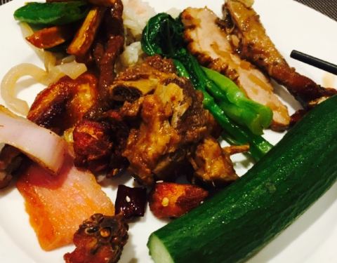 早去,要么就得等位,菜还都是不错。乌梅汤有点甜,不够冰,斤两足。背景无几说,好多饭馆都是这种风味啦,也算有思想格调。色香味俱全。锅里可以下菜蔬,菜蔬很有滋味。还有团购。#果蔬大拌菜#这样多油油腻腻的食物,幸亏大拌菜了,里头有圣女果,黄瓜什么的的,尤其清爽美味,就是,作料不是超赞,很有离合感。