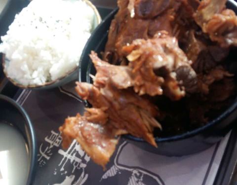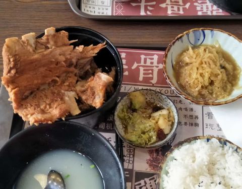 犟骨头去过好多次,开业活动的时候去了好几次。这家店是朋友推荐给我的。我感觉这一份套餐太适合了。骨头的肉不少,美味可口。小菜和汤简直美味的不要不要的,最开心了。白米饭也不错,比较有嚼劲。我朋友去吃,跟我说她吃撑了????。