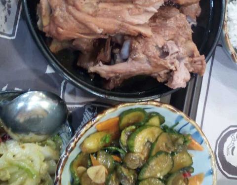 鲜美,伙计也很帅??,环境不错,一份里面好大一碗酱骨头,底下还有土豆豆角垫底,我们一家三口去吃的,去的时候一点,找了半个小时才找到,方向感不行啊。一点半去的还是有三桌,这家店生意不错。我吃着味道稍稍有些甜了,店里装潢风格我喜欢。