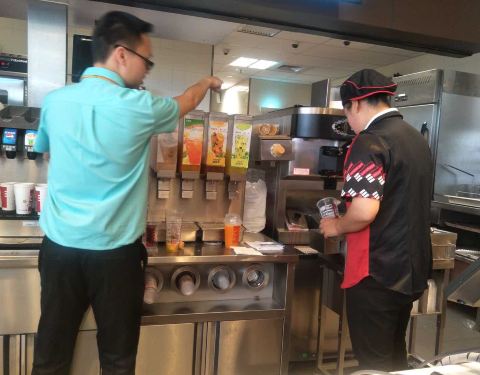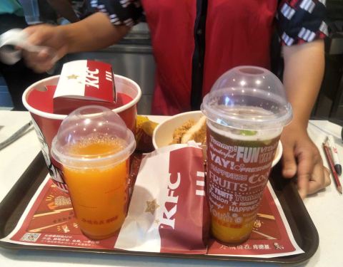 - 这家肯德基的话呢,一次性手套也很好,免费的一次性杯子的话用服务态度也非常好,还是很喜欢吃