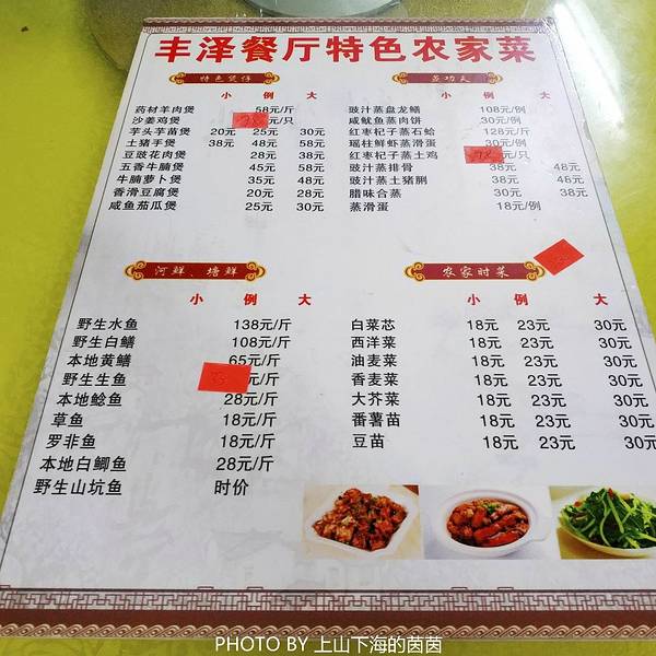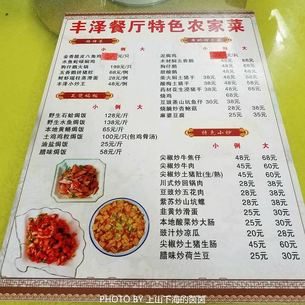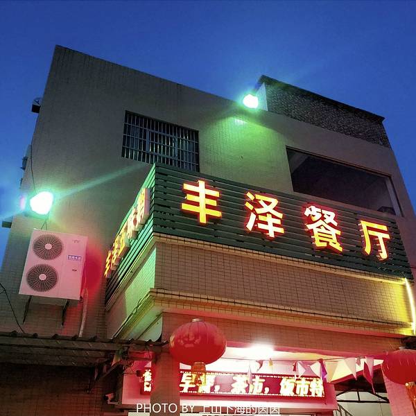 【餐厅地址】广东省江门恩平市良龙东路与369省道交叉口北50米 【人均价格】50元 【所属菜系】粤菜(恩平特色农家菜) 【特色美食】甜酸鹅、柴火焖土猪手、土鸡鸡粒焗饭走到哪吃到哪,如果到了江门恩平旅行也自然不能错过当地的各色美食,譬如“恩平烧饼”“黄鳝饭”……就算时最普通的食材通过恩平人的能工巧手可以炮制出让人垂涎不已的特色美食。恩平当地有蛮多主打农家菜和地方特色菜的餐厅,装修一般也不会很精致,都是大排档的类型。其中丰泽餐厅凭借稳定的餐品水准、实惠的价格和有利的地理位置得到顾客的青睐,所以无论是午市还是晚市,这里都基本客满!点餐的主MENU是一张A4正反面,包括招牌菜、本地特色菜、特色小炒、瓦煲焗饭、特色煲仔、蒸功夫、农家时菜、河鲜塘鲜,菜式选择真不少,但作为食客来说选择起来还是很方便。虽然主要是做过路客的生意,但是店家依旧比较实在,价位绝对算是亲民,餐点的出品也可圈可点让人可以轻轻松松大快朵颐。甜酸鹅:鹅身充分吸收汁液,一口下去酸酸甜甜的味道在唇齿间溶融,那种酸爽的口感让人根本停不来。酸菜炒大肠:大肠没有一点怪味而且超级脆嫩,酸菜的味道和大肠超配合的,不仅开胃而且下饭。柴火焖土猪手:满满的胶原蛋白却丝毫没有腻口的感觉,好吃到停不下来。土鸡鸡粒焗饭:大大一煲分量十足,12个人人手一碗都还有不少剩下,最美味的除了土鸡粒还有锅巴【TIPS】 1、虽然餐厅是大排档性质,也不是在城区里,但是依然可以微信、支付宝付款,十分方便。 2、店内提供免费WIFI,速度蛮快。 3、门口有免费停车场,十分方便自驾前来。
