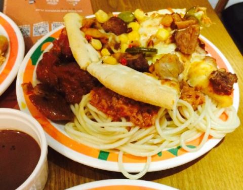 坐公交车看到过这家店,招牌挺大,环境也不错,附近也都是一些吃饭的地方,环境是不错的。店里挺宽大的,不错的地方,这里是披萨的境地,各种口味,非常多,还有许多好吃的,都非常开心,还有水果,都很棒。