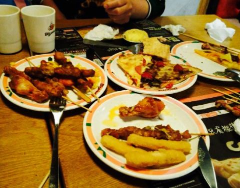 每次放假回家必去吃的自助。首先重要的事情放前面,榴莲披萨真的非常特别特别入味,无法形容的入味。羊肉串也不错,西红柿肉酱意面也很爽口,搭配长豆角西兰花更不错。甜品类推荐布丁,好入味。自从开始吃比格,我就对西餐自助有了非常大的好感,每个菜都很精美,推荐推荐。