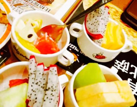 没有非常开心的菜品,水果非常清新,主打菜品,披萨,饼很薄,芝士酱太少(可能本人比较喜欢吃芝士酱的原因