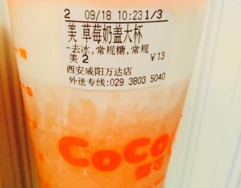 天气转凉好快,穿着长袖长裤在万达里走也冻的不好,必须来杯热饮。走到coco都可,菜单在显示屏上,不得不说,屏幕亮瞎我眼??建议亮度调暗些。选了开心的布丁奶茶,热的。营业员动作挺快,没到一分钟就递过来了。我高兴去接,拿到手里后突然后悔,我应该说要烫的才好,现在这个温度大概30度以下吧,取暖有点不够??口味一如既往,挺好喝。本想在店里坐一会,可是桌子有不少类似面包渣的碎屑,因此就走了。建议营业员在留店客人走后及时清理一下吧,当天虽是七夕,但coco这里人并不多,有两位营业员,我想这点工作量是忙得过来的。