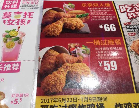 晚上人比较少,排队不用排太久。速度挺快的。味道正常水平,不过鸡米花稍微有点太辣了。环境挺好的,就是……如图