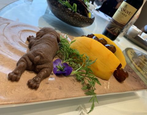 今天同事的结婚喜酒就办在市区老体育场对面的御景山庄。这家饭店的包间很抢手,需要提前定,他们家的菜味道也很好,味道不错,摆盘也很漂亮。
