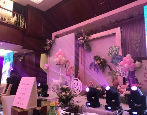 今天一起进厂的同事结婚啦,祝她新婚快乐,结婚酒宴办在老体育场对面的御景山庄,这里的大厅布置的很不错,里面还有四楼的包间,这样布置挺别致的。