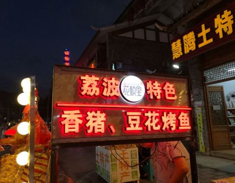 小吃街上几乎都是烤鱼店,在点评看几乎都缺斤短两的,貌似都是旅游的人去的店,只推荐杨梅人的杨梅汤和枇杷汤,还有一个5毛一串肉的江中烤肉烧烤摊还不错。